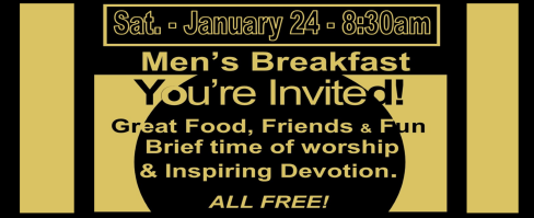 Men ages 18 and up are invited to join us for a FREE Men's Breakfast on Saturday, January 24 at 8:30am in the Fellowship Hall.