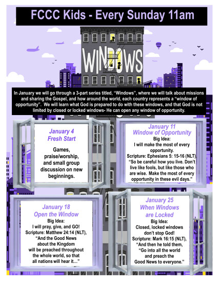 Every Sunday, from 01/04/2026 to 01/25/2026, 11:00 AM - 12:00 PM