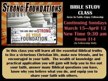In this class you will learn all the essential Biblical truths to live a victorious Christian life, make new friends, be encouraged in your faith,