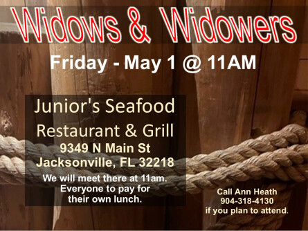 Meet us at Junior's Seafood located at 9349 N. Main Street, Jax, FL 32218